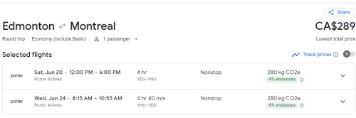 Porter has dropped the price of their June flights from Edmonton to Montreal down to $373 CAD roundtrip including taxes.