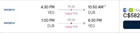 3. Search for a flight from Edmonton (YEG) to Dublin, Ireland (DUB)
